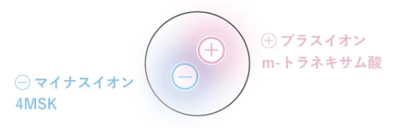 4MSKとm-トラネキサム酸を混ぜたものを「抗メラノ機能体」と言い、イオンの力で引き合うのでシミの元に速く、そして深く届くように開発されています。
