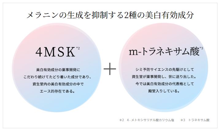 4MSKは資生堂が開発した成分で、厚生労働省認可の医薬部外品有効成分となっています。