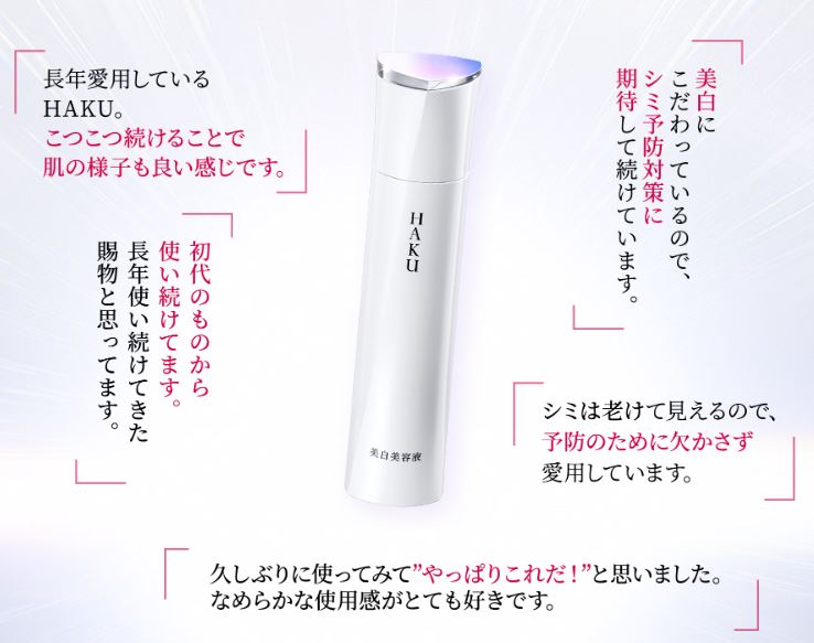 資生堂は長年スキンケア業界を支えてきた有名な会社です。その資生堂が美白に特化させたのがHAKUシリーズですので、効果がないということはありえません。