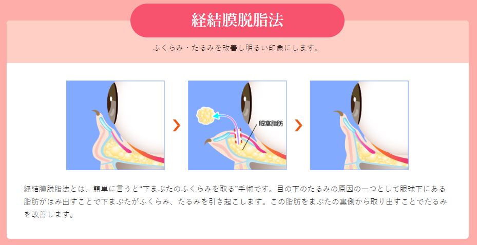 経結膜脱脂法は下まぶたのふくらみを取る手術です。