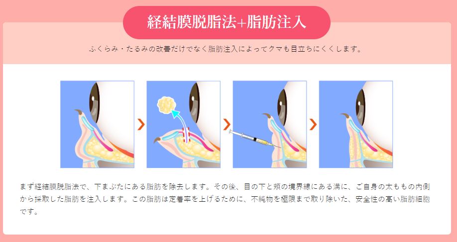 目の下のたるみ改善方法②経結膜脱脂法+脂肪注入