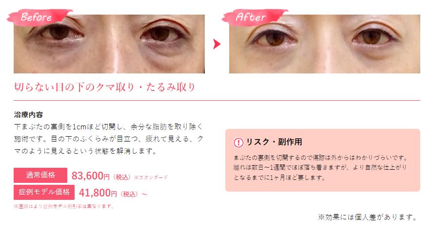 手術後は跡も残らず、簡単に目の下のたるみを改善できるので非常に有効な手段と言えます。
