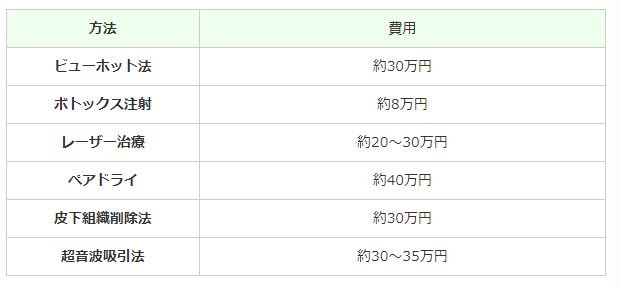 でもボトックス注射以外の方法は、どれもだいたい同じくらいの費用がかかりますよね。